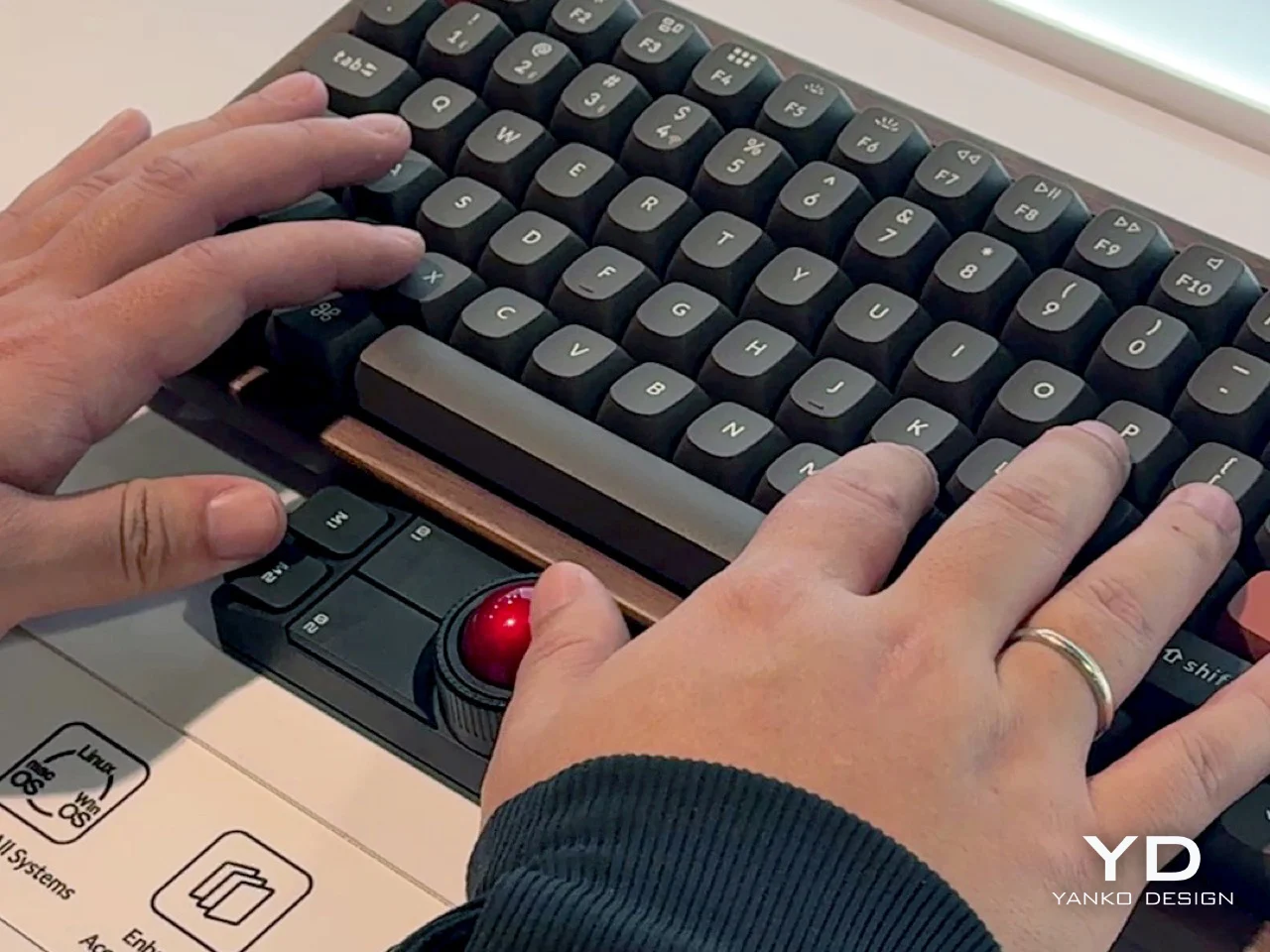 So the idea here is to never take your hands off the keyboard to mouse, although you can use it off to the side like a regular trackball if you want. I say the ability to leave your fingers on the home row is even better.