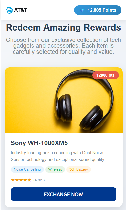 – AT&T Mobile App: Rewards section
