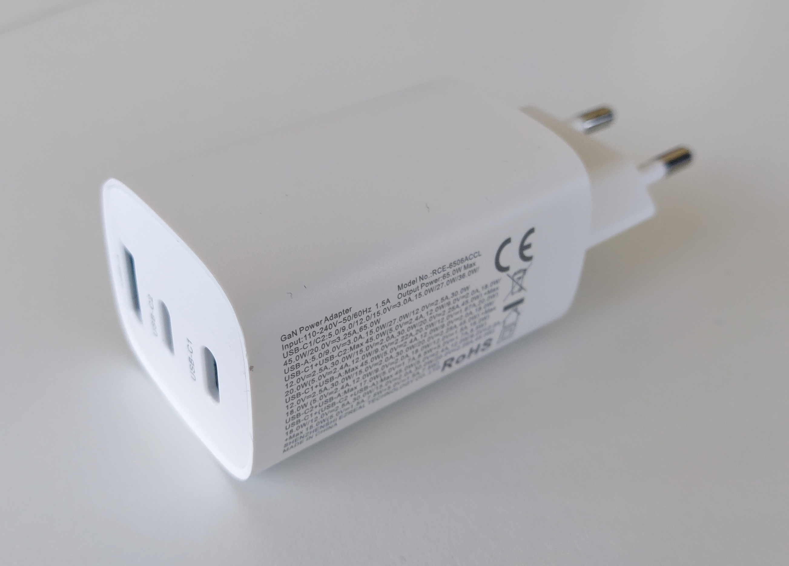 Pour ceux que cela peut intéresser, le bloc chargeur fourni (65W) et ses caractéristiques. Ce bloc est fourni avec un cable USB-C/USB-C.