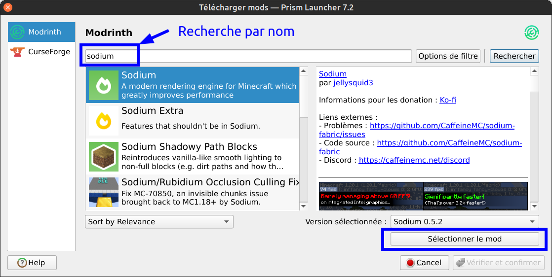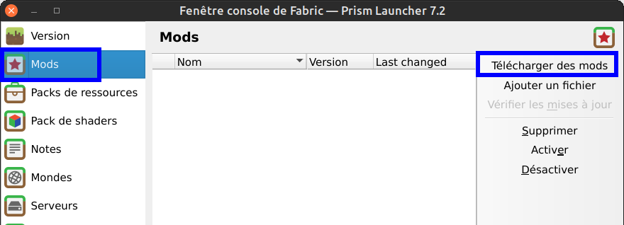 Ces éléments sont installables à la main, mais c'est assez fastidieux et il existe des lanceurs qui peuvent s'occuper de ça. Nous allons ici expliquer comment utiliser PrismLauncher (l'un des meilleurs lanceurs actuels).