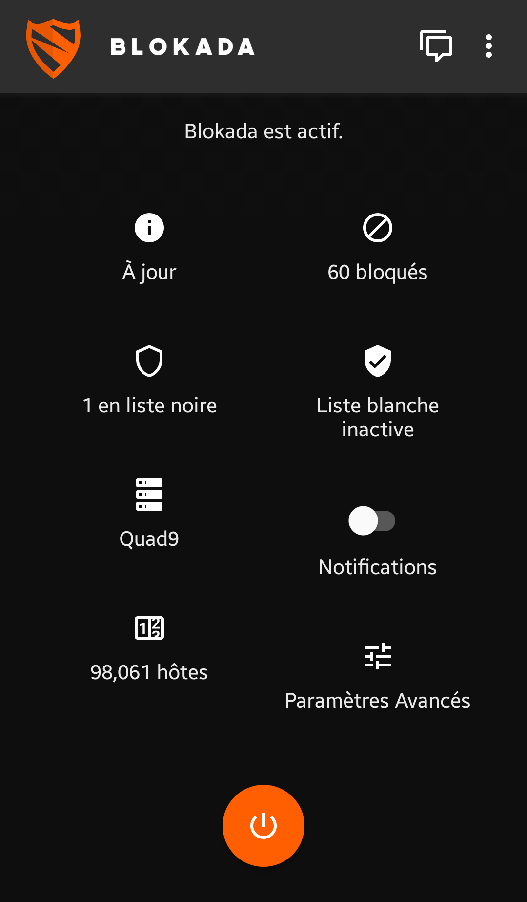 - Je ne recommande absolument pas la liste par défaut fournie par Blokada (Energized Blue) car elle est largement abusive (elle bloque par exemple www.commentcamarche.net//). Vous pouvez la désactiver et ajouter ma liste à la place. * Par défaut Blokada laisse passer GooglePlay, GoogleDrive et d'autres applications Google sans la moindre restricition. Pensez à désactiver les listes blanches. </note> —- ===== Mise à jour ===== Je conseille de mettre à jour tous les mois.