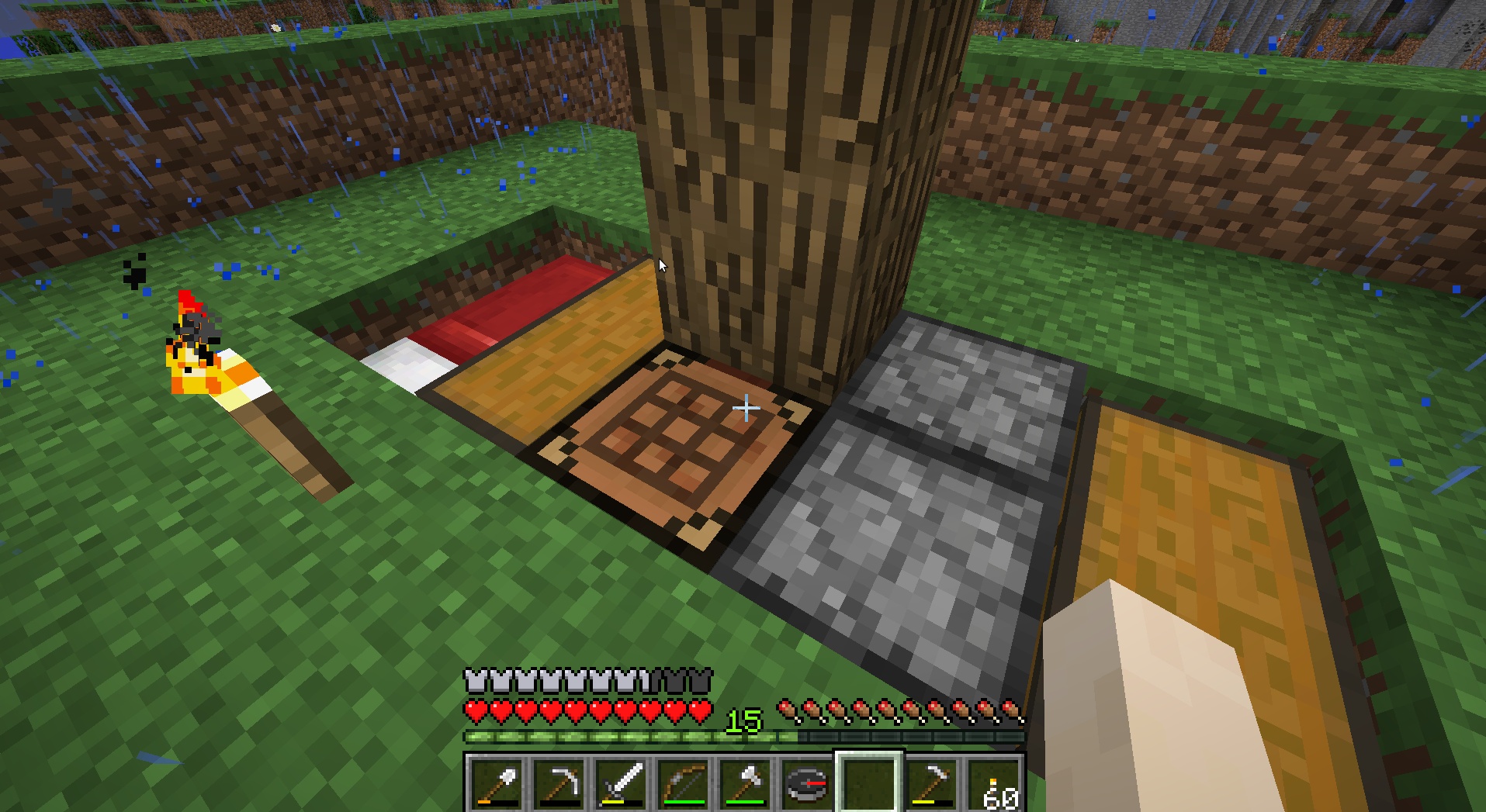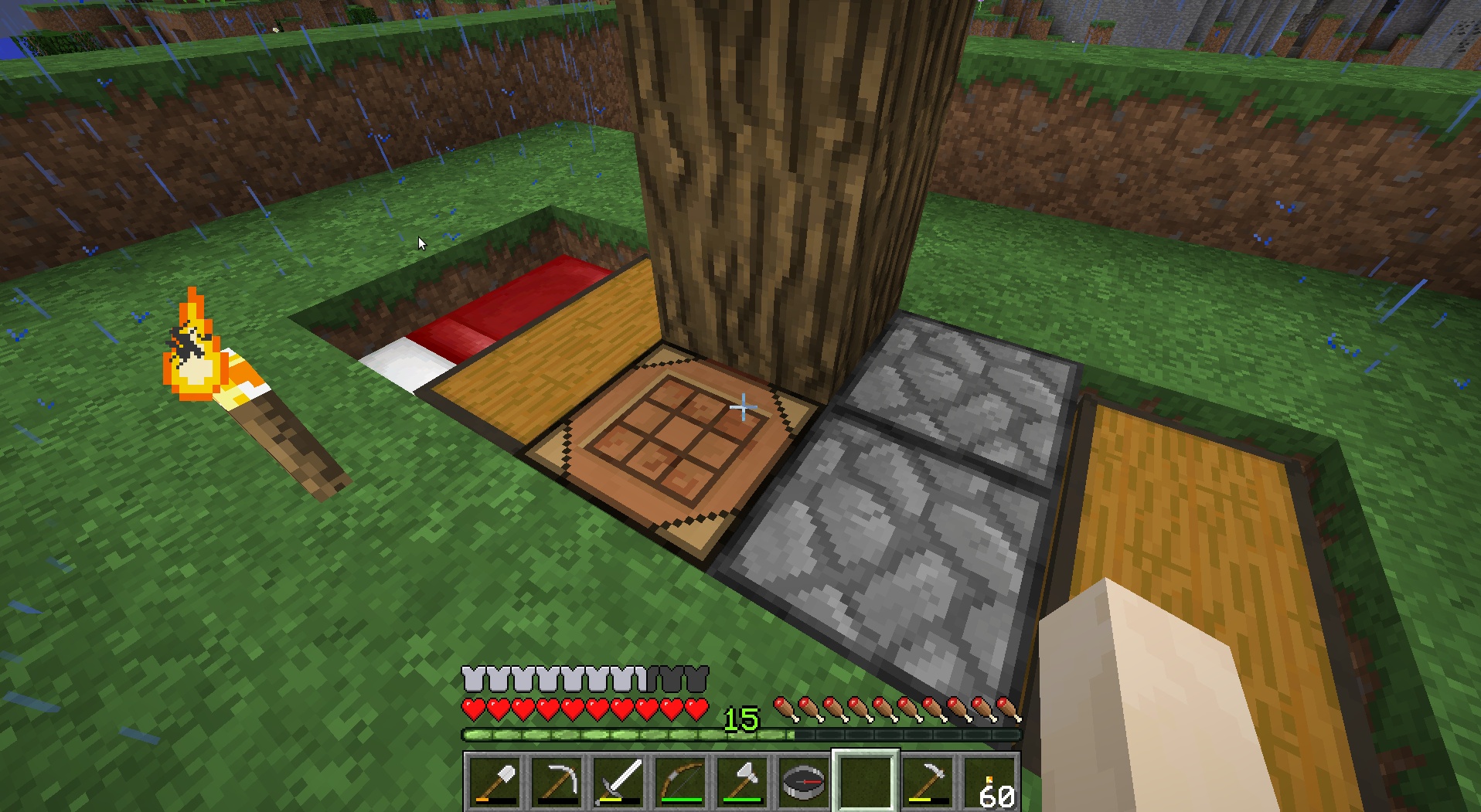 - Avoir toujours sur soi: un stack de bois, de la nourriture et un seau d'eau plein.