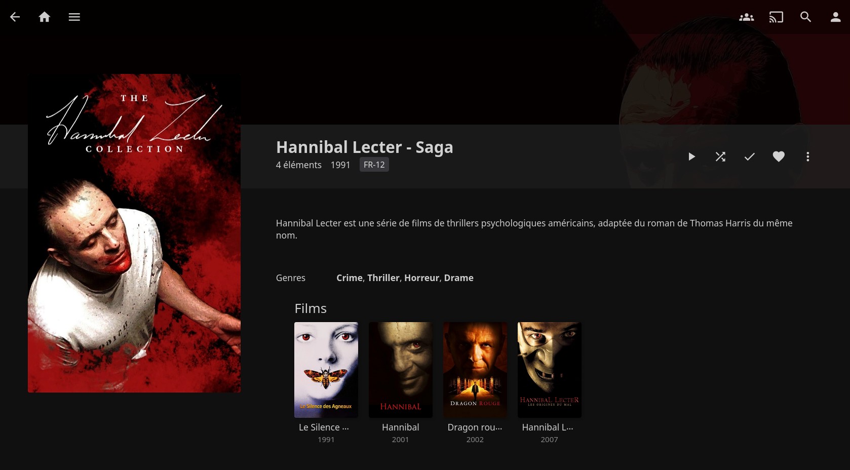 - Si Jellyfin a pu identifier correctement vos films, ils devraient maintenant être groupés. (Si ce n'est pas le cas, soit le film a mal été reconnu (➡️nommez correctement vos films et insérez l'identifiant imdb), soit aucune collection n'existe (➡️créez manuellement des collections et mettez-y vous-même les films)