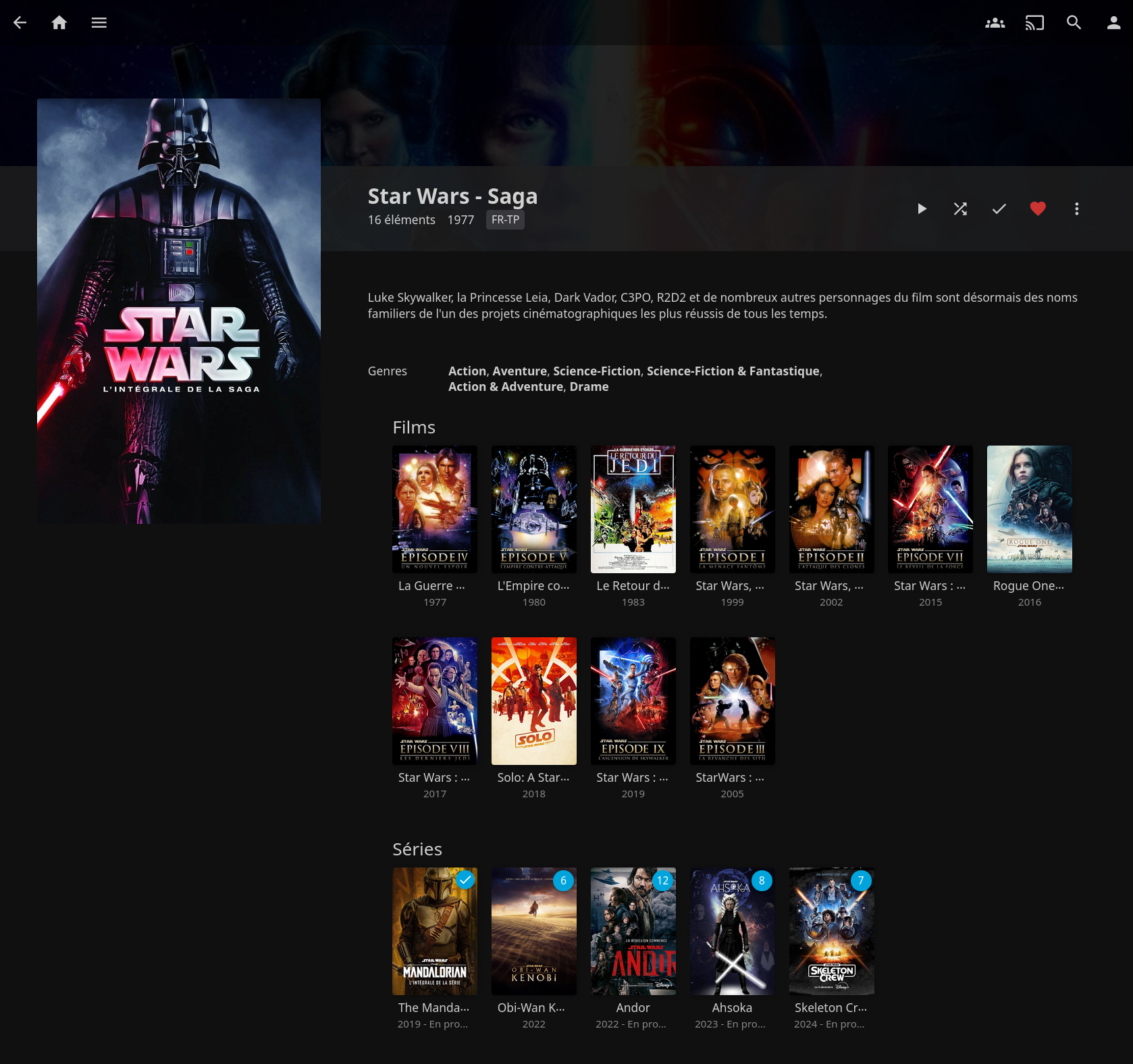 - Cependant, vous pouvez tout à fait ajouter les séries à une collection de films existants. Par exemple, ajoutez toutes les séries Star Wars à la saga de films StarWars. Cela vous permet, quand vous êtes dans la collection films, de voir également les séries correspondantes: