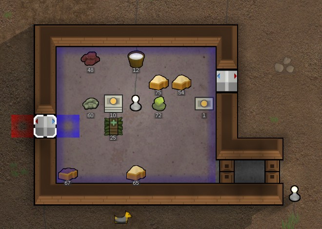 - Dès que vous fermez une zone (par des murs, une porte…) vos colons vont automatiquement construire un toit.