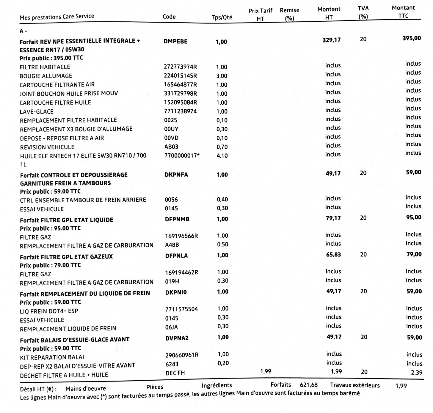 - 2023-06-10 : Lors de la mise sous contact, j'ai plein d'alertes qui s'affichent : Problème démarrage en côte, problème ESP, problème injection, problème freins. Inutile de vous dire que ce ça ne me rassure pas. Je l'emmène au garage Renault sans rendez-vous. Voiture déposée à 8h, récupérée à 14h. Le technicien m'a expliqué: