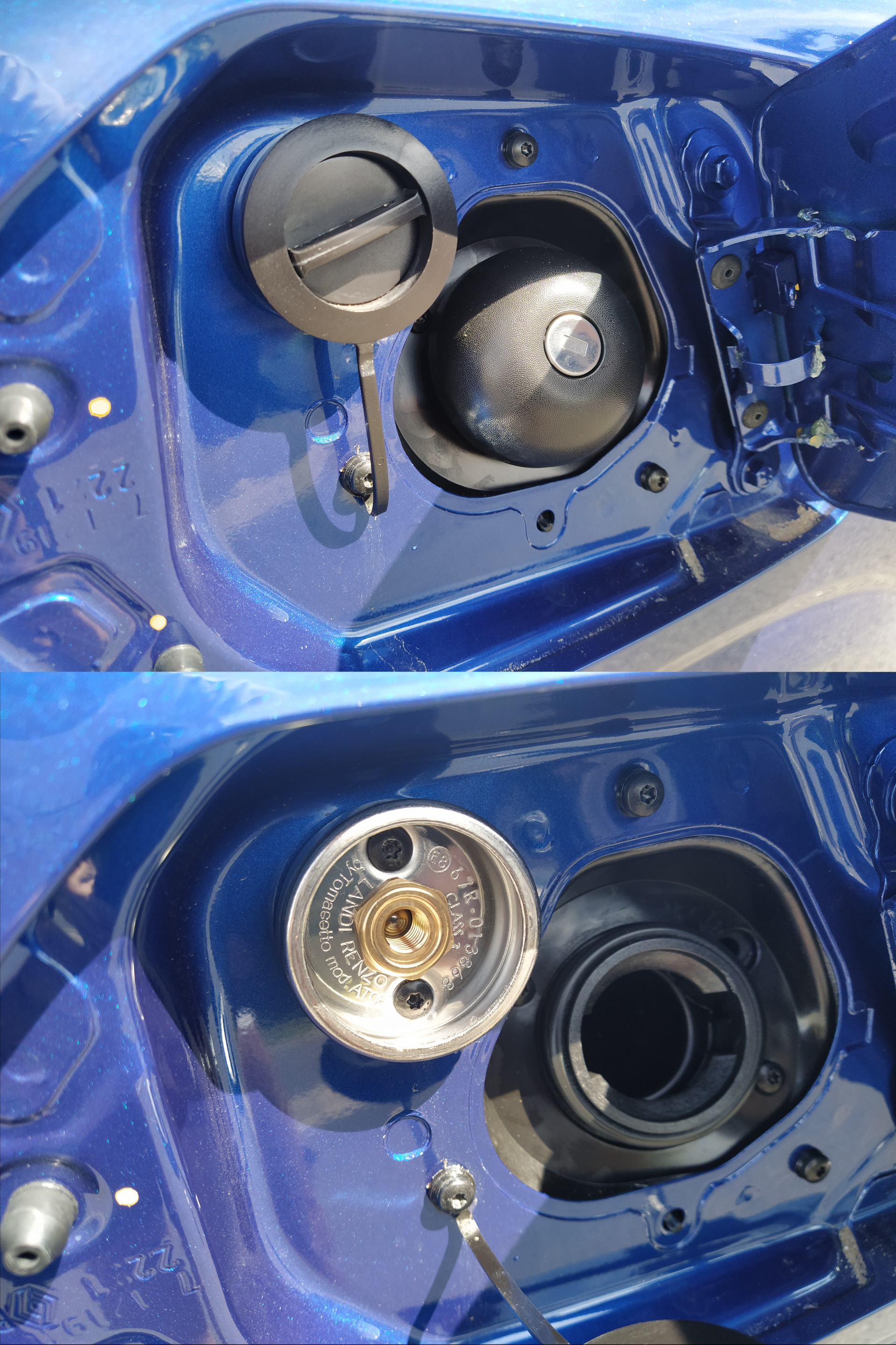 - J'ouvre la trappe carburant et je dévisse le bouchon de protection en plastique noir.