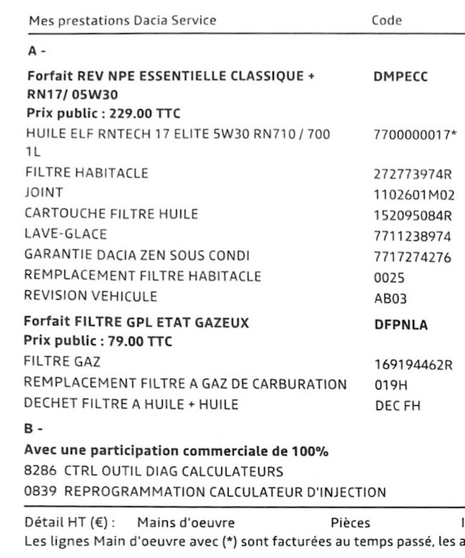 - 2024-09-17 (un peu plus de 104 000 km) : La voiture est donc passée au garage pour le remplacement du détendeur de gaz. Je n'ai pas déboursé un centime, ça a été entièrement pris en charge par la garantie. Elle roule maintenant sans problème au GPL.