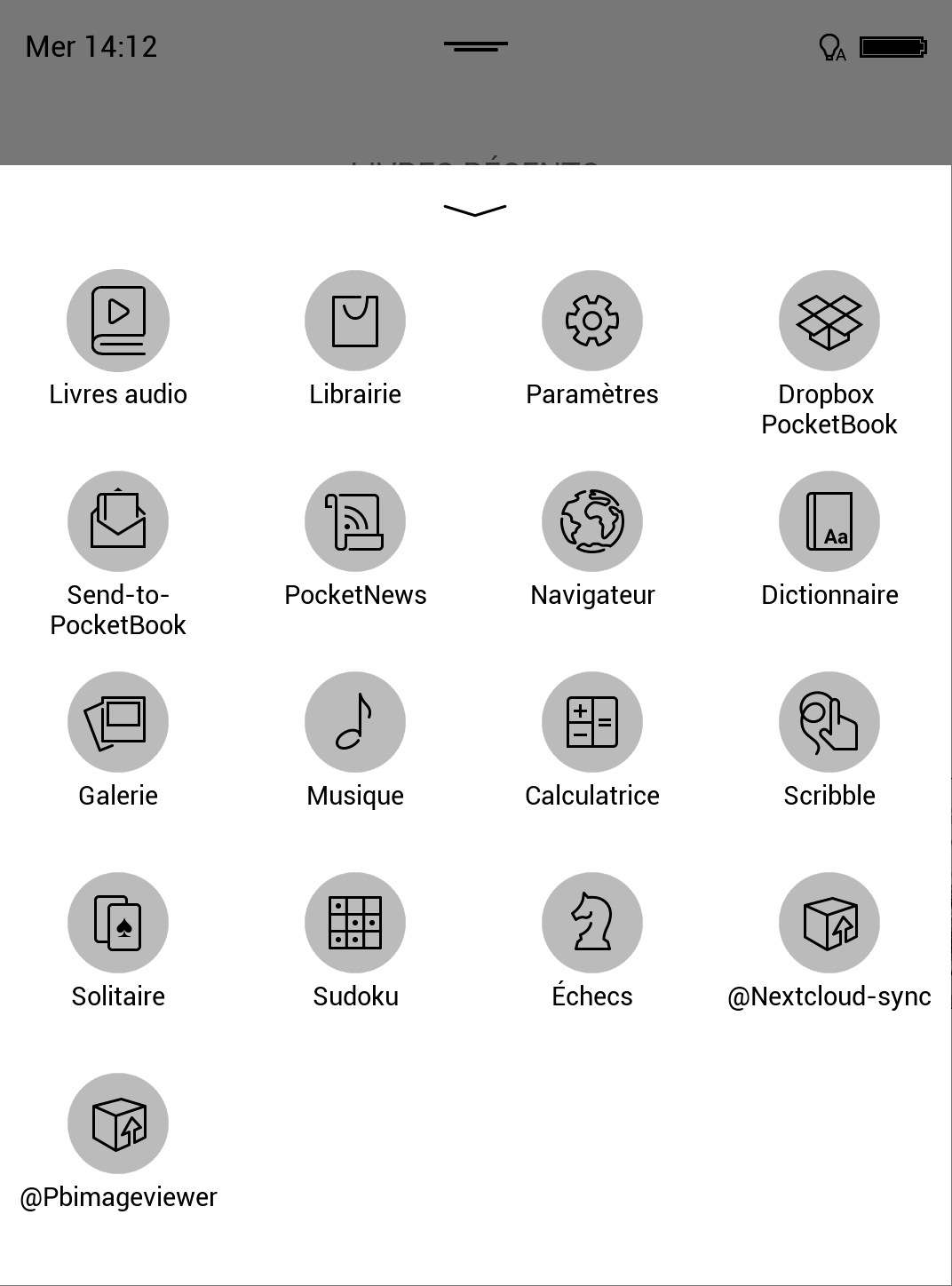 En plus de la fonction "lecture", la liseuse est fournie avec quelques applications: