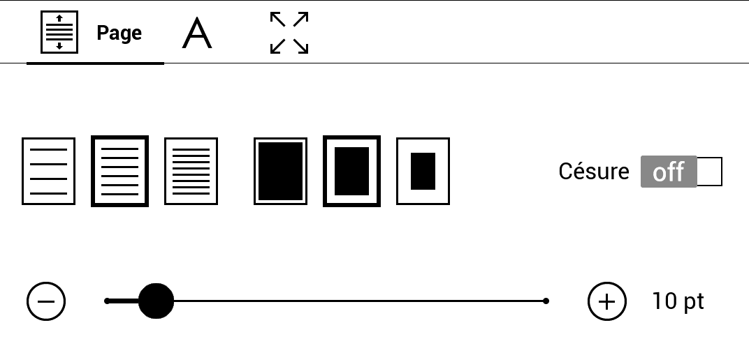 | Mise en page | La mise en page m'est imposée par l'imprimeur. | Je peux faire varier la police elle-même, la taille, l'espacement des lignes, les marges… pour lire le plus confortablement possible. Si vous avez des problèmes de vue, une liseuse est une planche de salut. |