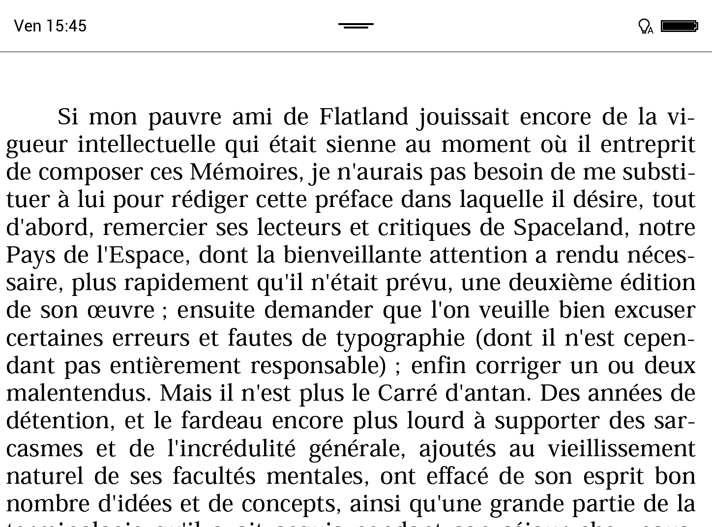 Si vous utilisez le mode standard (mode "page entière" en portrait), même si l'écran a une résolution assez fine, c'est assez fatiguant à lire: