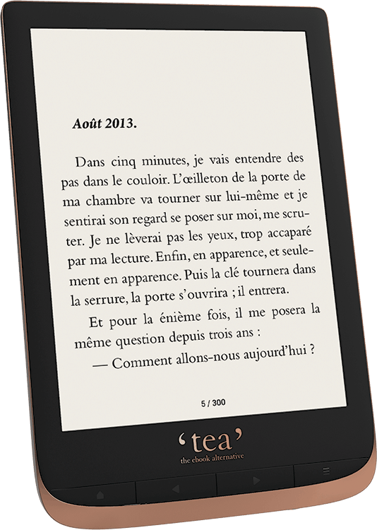 Les liseuses Tea sont en réalité fabriquées par Pocketbook. À cause de problème de droit des marques, Pocketbook n'a pas le droit de vendre sous sa marque en France. Elles sont donc commercialisées sous la marque "Tea" (ou Vivlio 1)), mais tous les modèles Pocketbook ne sont pas forcément disponibles en France (on peut tout de même les trouver sur Amazon).