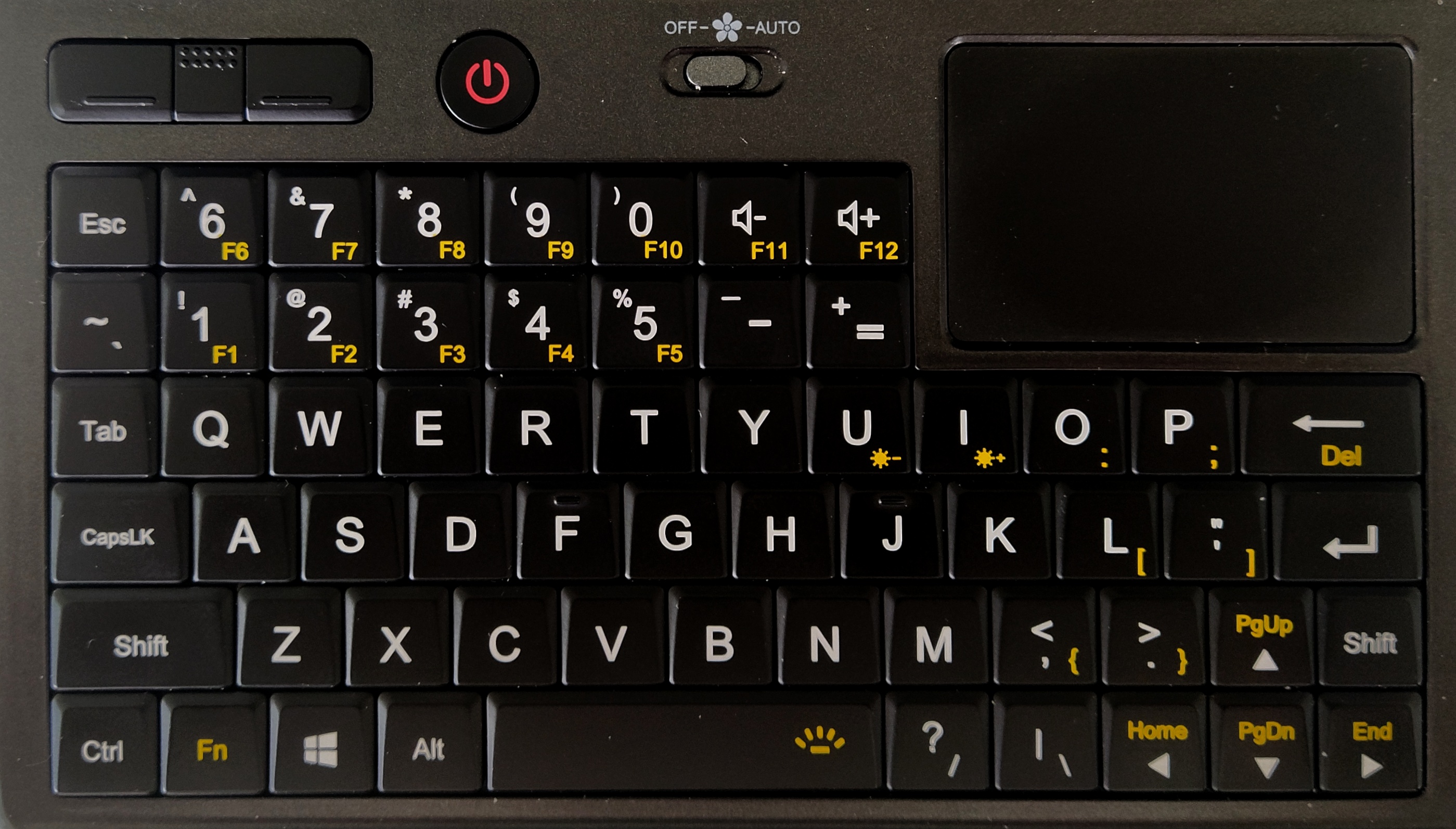Le petit clavier à la disposition non-conventionelle (vous ne pourrez pas taper à pleine vitesse comme sur un clavier traditionnel 105 touches). Vue la largeur des touches, il est plus fait pour taper à deux doigts.