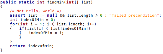assert list != null && list.length > 0 : "failed precondition";