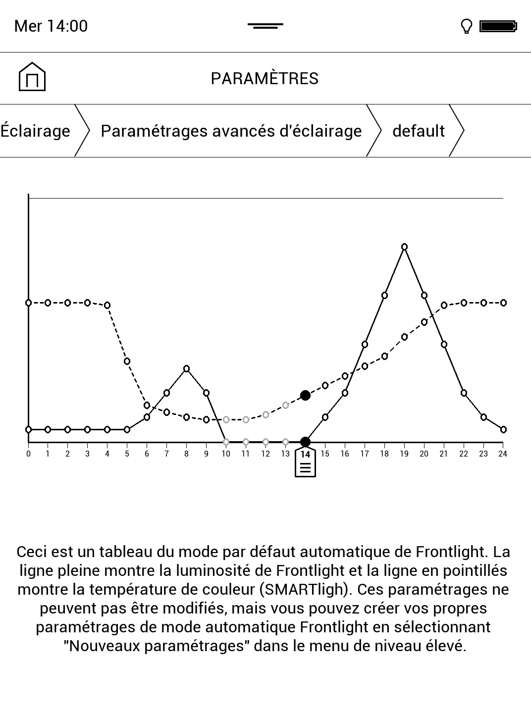 Les réglages par défaut peuvent être modifiés. Vous pouvez même créer plusieurs profils de ce genre et passer de l'un à l'autre. Les deux courbes vont déterminer l'intensité de la luminosité, et la couleur.
