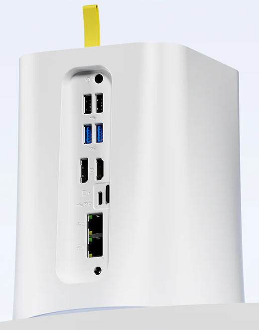 La connectique est vraiment excellente : 1 port alimentation (fournie), 2xUSB2, 2xUSB3 , 1xUSB-C, 1 HDMI, 1 DisplayPort, 1 jack audio, 1 port carte TF, 2 ports Ethernet 2,5 Gbits et Wifi 6 (avec 2 antennes internes). L'alimentation se fait avec un bloc fourni, mais il peut aussi être alimenté par le port USB-C. On peut virtuellement en faire n'importe quoi, un routeur, un media-center (par exemple avec Jellyfin) ou un serveur Minecraft. Mais ses deux emplacements 3,5 pouces (qui acceptent aussi les 2,5 pouces) en font naturellement un bon candidat pour un NAS.