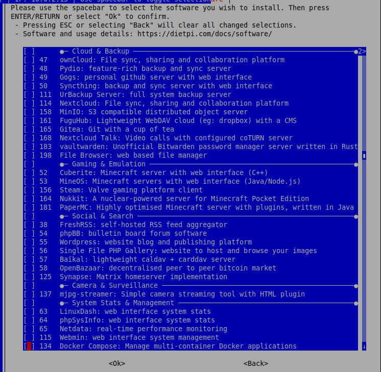 sudo dietpi-launcher(ou en lançant directement l'outildietpi-*souhaité). Exemple:- Quand vous cherchez à installer une application, cherchez d'abord dans