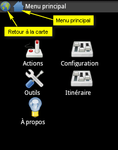 - Simple-tap sur la maison en haut à gauche: Afficher le menu principal