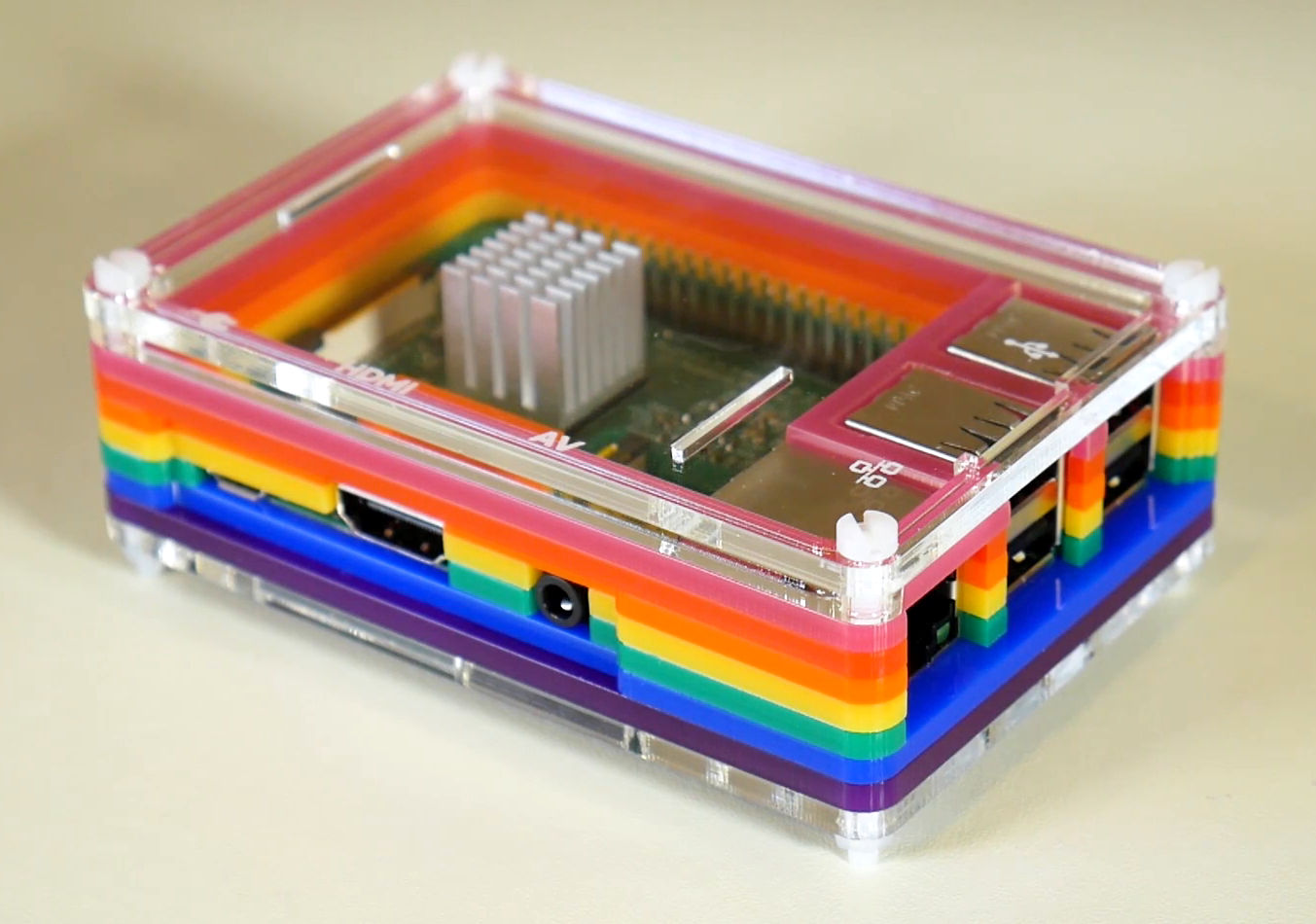 - Boîtier Pibow Rainbow pour Raspberry Pi 3 ( 11,34€, réf. PIM147 ).