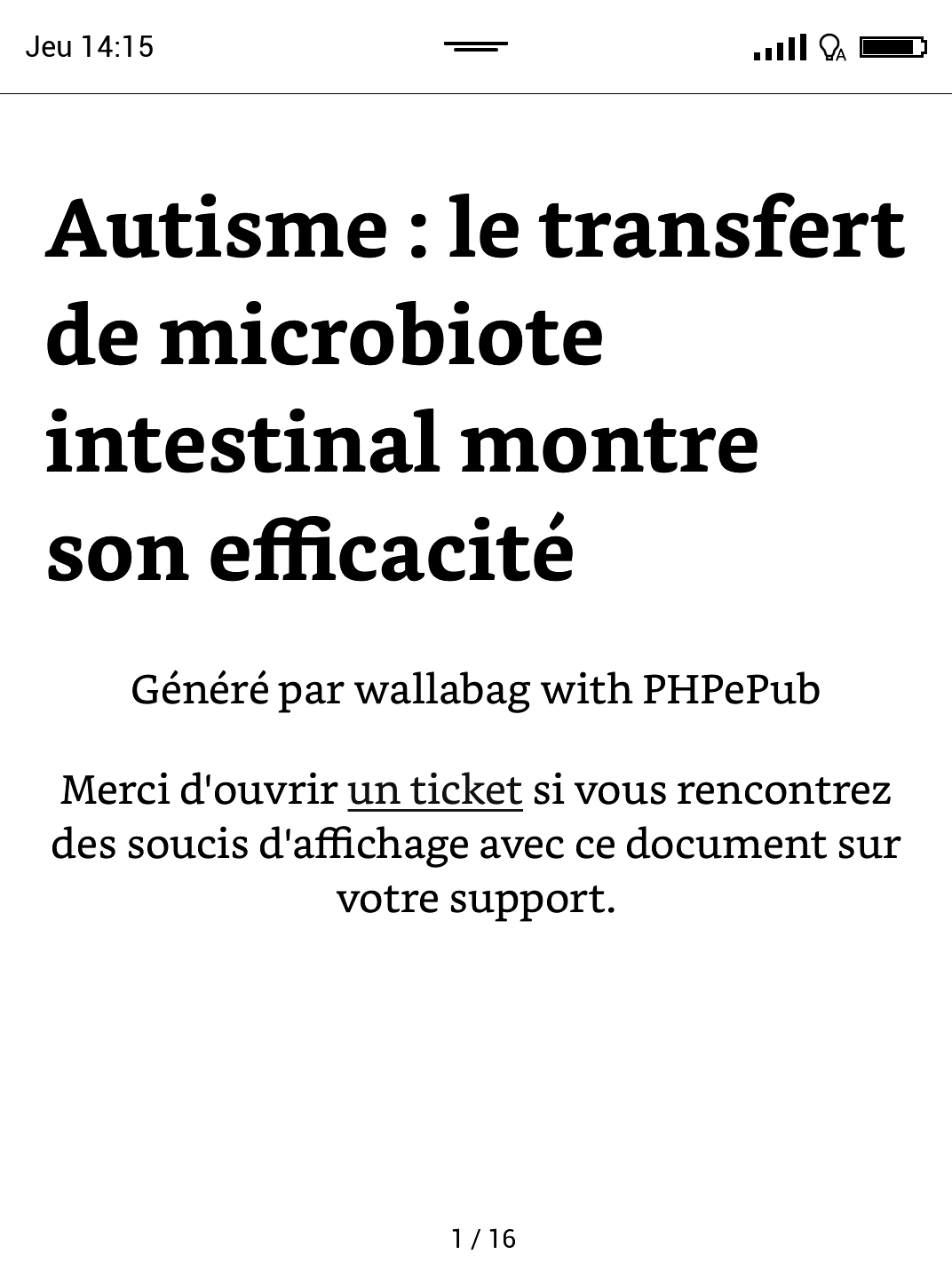 - Besoin de convertir une page web en epub pour le lire sur votre liseuse ? L'extension Firefox ePub Creator fonctionne assez bien… mais ça ne sera jamais aussi bon que Wallbag !