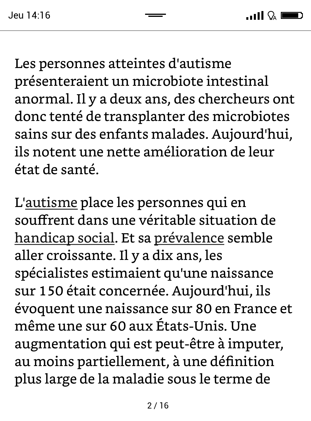 Si vous utilisez le mode standard (mode "page entière" en portrait), même si l'écran a une résolution assez fine, c'est assez fatiguant à lire: