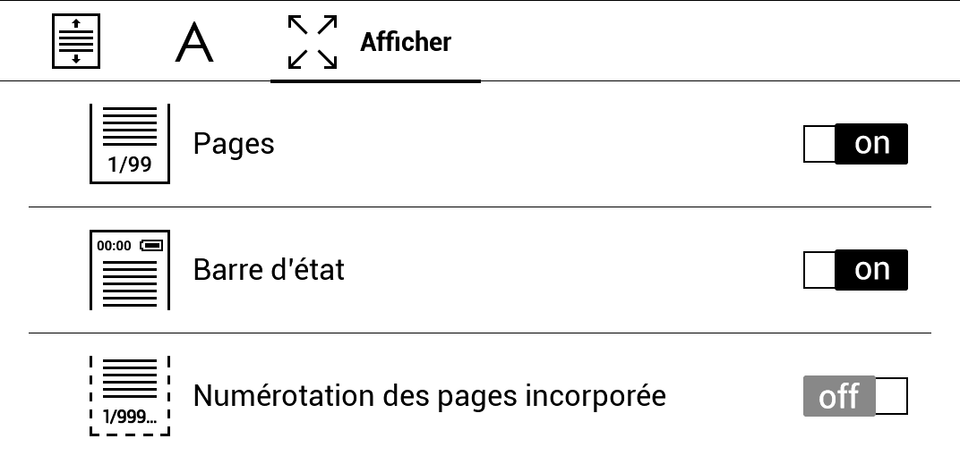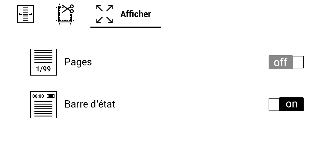 - À noter que la liseuse possède un mode "rognage" pour détecter et éliminer automatiquement les bords blancs d'un PDF.