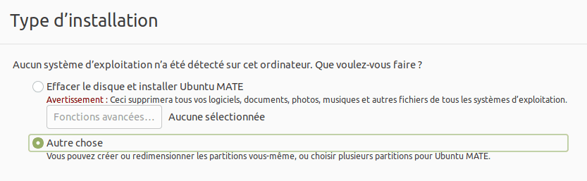 Partitionnement pendant l'installation 1)