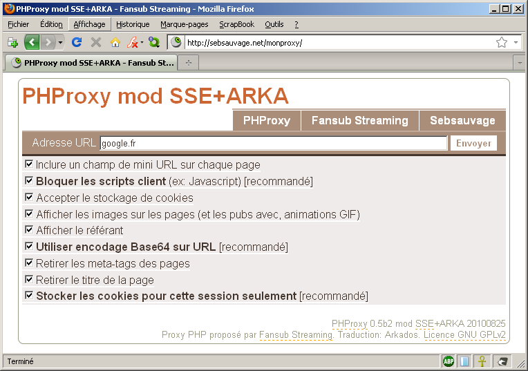 - PHProxy 0.5b2 mod SSE+ARKA 20100825